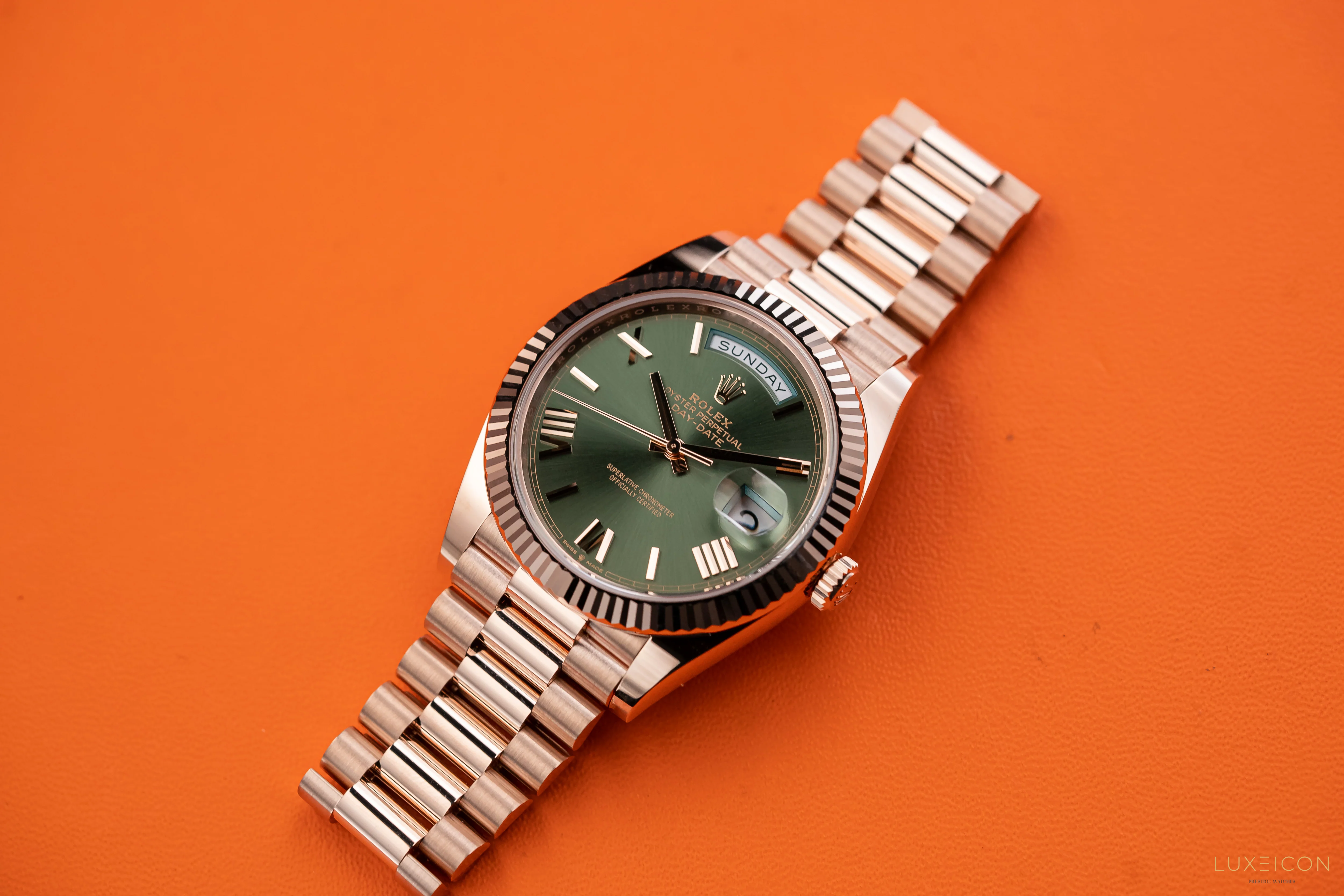 Rolex 228235 Day-Date 40 Olive Green Dial Rose Gold 40mm President 60th Anniversary
