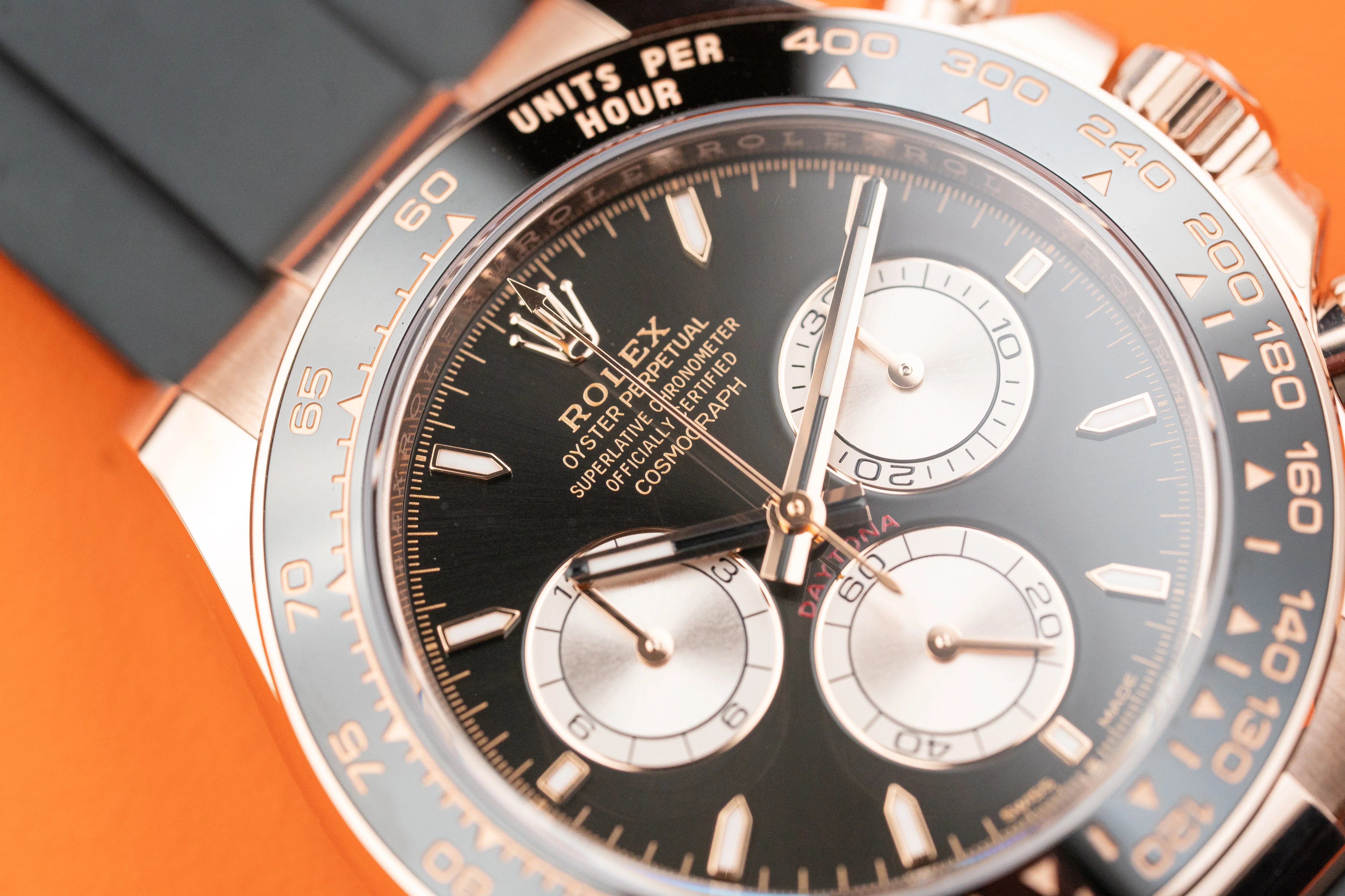Rolex Cosmograph Daytona Black Sundust Index Dial Everose Gold Oysterflex 126515LN