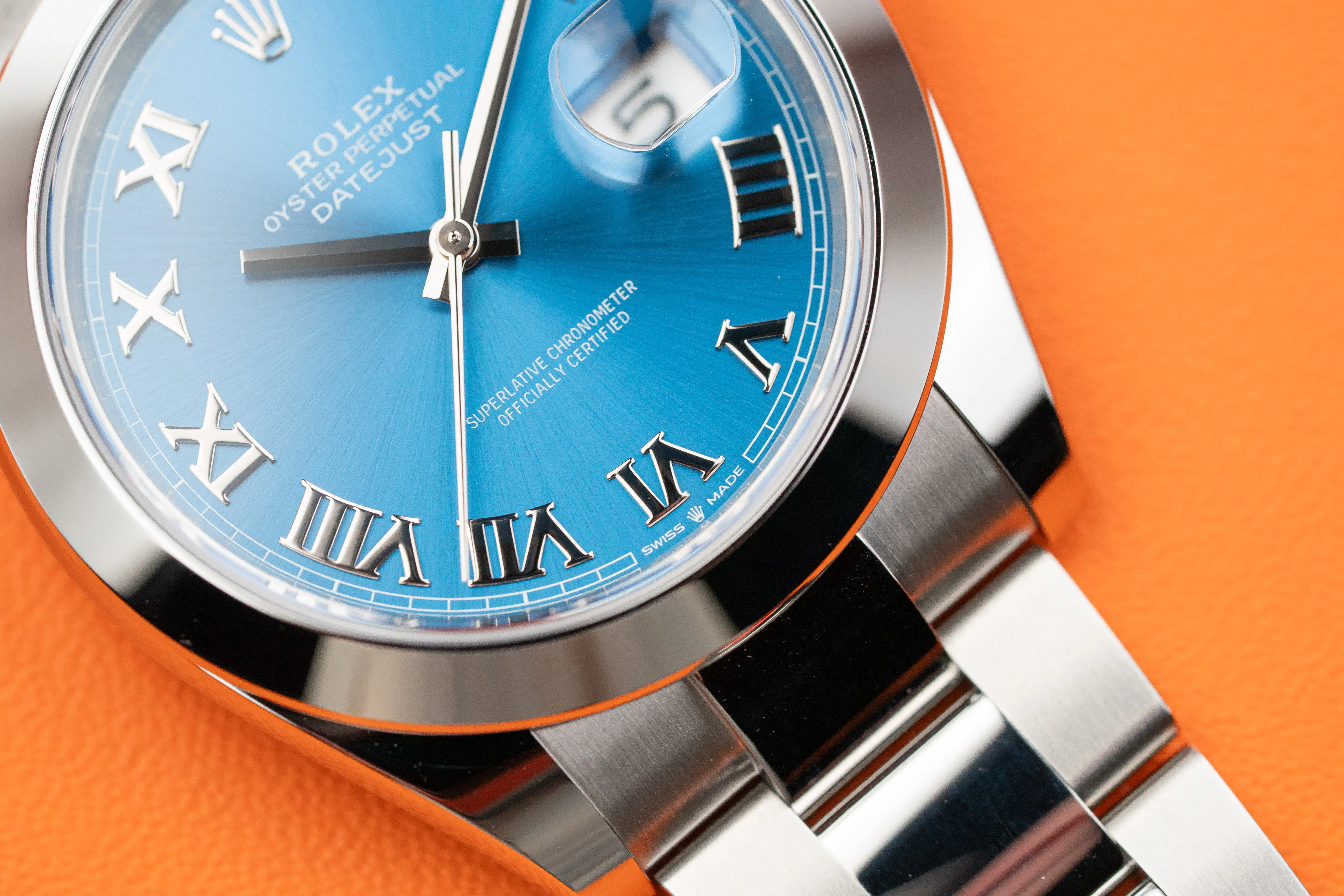 Rolex Datejust 41mm 126300 Smooth Oystersteel Azzurro Blue Roman Dial