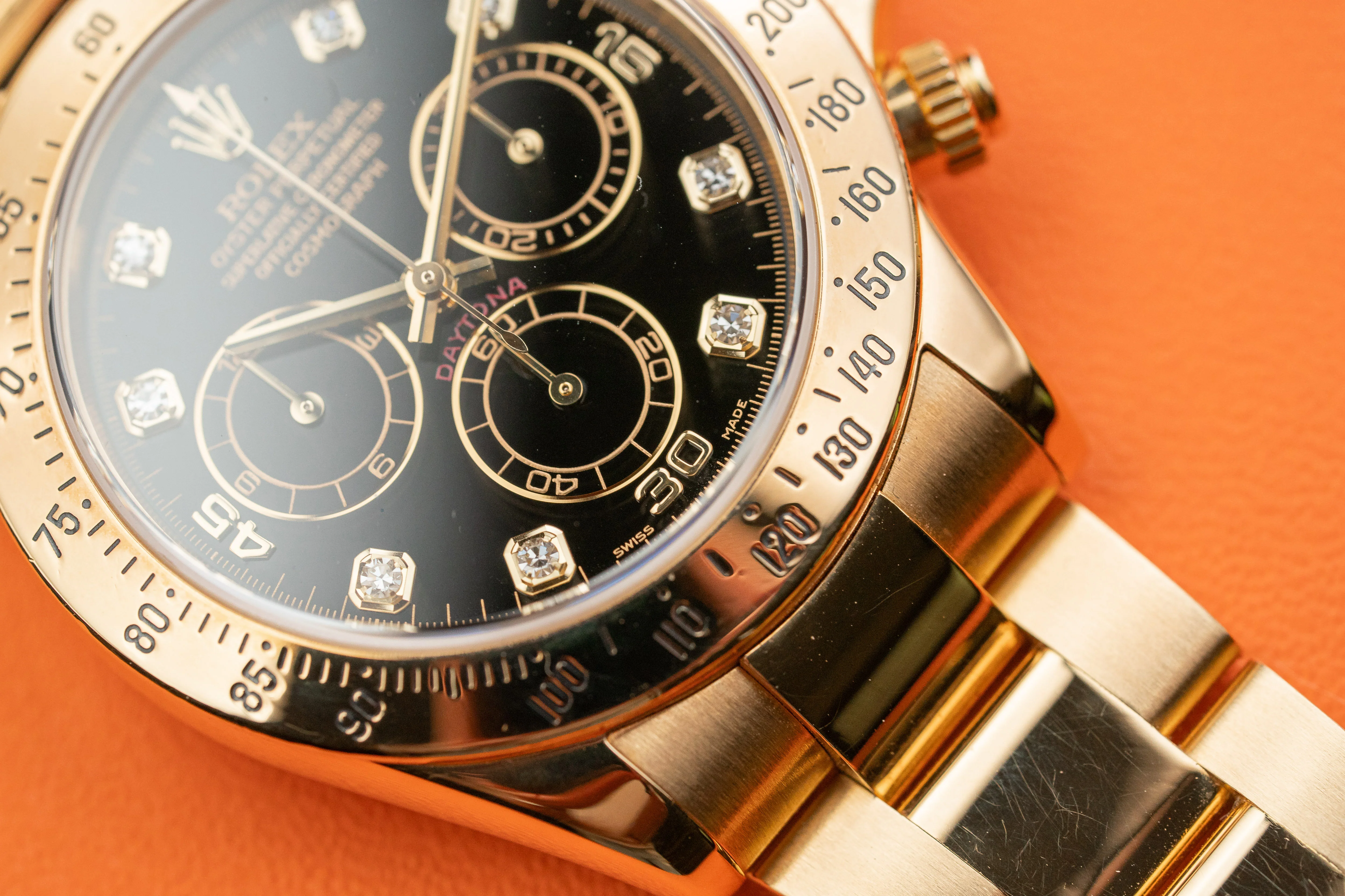 Rolex Daytona Chronograph 116528 18k Yellow Gold Black Diamond Dial 2005